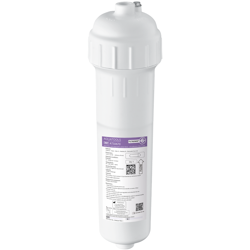 Réf. AT50670Filtre en ligne anti-légionelles FILT&SWAP duo : charbon actif et microfiltration.