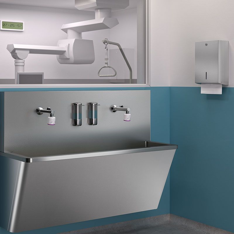Très faible encombrement adapté aux robinetteries à faible hauteur de bec : H. 44 - Ø. 46