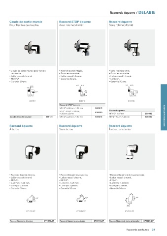 Coude de sortie murale 868121 MF1/2", L.20 mm, H.30 mm 836215 M1/2" - F3/4", H.29 mm 838020 RACCORDS SANITAIRES RACCORDS SANITAIRES