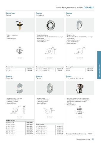 • Rosace ouvrante chromée. • Rosace filetée. • Rotule recommandée pour l’adaptation