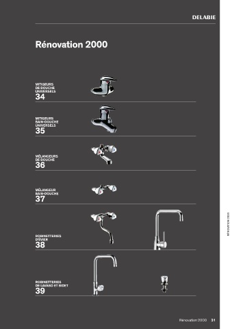 Rénovation 2000 MITIGEURS DE DOUCHE UNIVERSELS 34 MITIGEURS BAIN DOUCHE UNIVERSELS 35 MÉLANGEURS DE DOUCHE 36 MÉLANGEUR BAIN DOUCHE 37 RÉNOVATION 2000 ROBINETTERIES D'ÉVIER 38 ROBINETTERIES DE LAVABO ET BIDET 39 Rénovation 2000 31