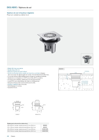 • Corps PVC sans aspérité (pas de rétention d’impuretés). Sortie verticale