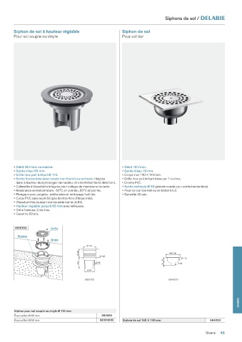 Siphon de sol à hauteur réglable                     Siphon de sol