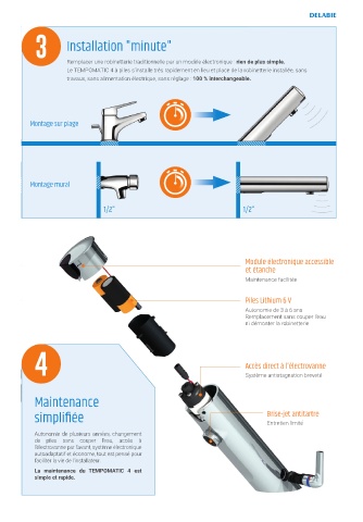 Le TEMPOMATIC 4 à piles s’installe très rapidement en lieu et place de la robinetterie installée, sans