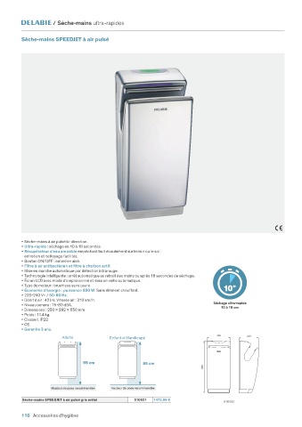 • Technologie intelligente : arrêt automatique au retrait des mains ou après 18 secondes de séchage.