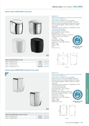 • Niveau sonore : 70 dBA. ACCESSOIRES D’HYGIÈNE
