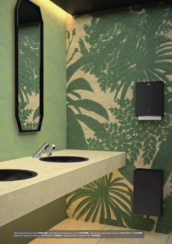 Distributeur d'essuie-mains 510601BK - Poubelle inox rectangulaire murale 510465BK - Distributeur automatique de savon TEMPOMATIC 4 512036P Robinet de lavabo automatique TEMPOMATIC 4 440006 - Vasque ronde à encastrer HEMI 120490BK