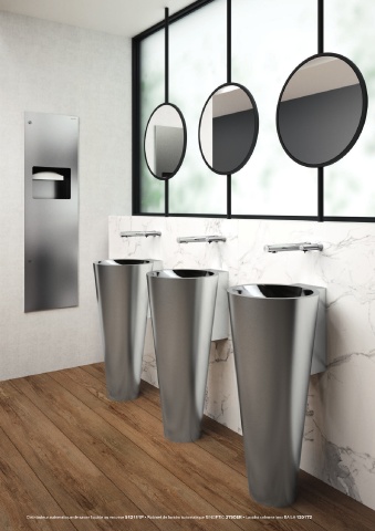 Distributeur automatique de savon liquide ou mousse 512111P - Robinet de lavabo automatique BINOPTIC 379DER - Lavabo colonne Inox BAILA 120172