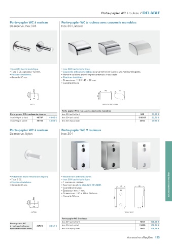 • Garantie 30 ans. • Avec serrure et clé standard DELABIE. 120 130 ACCESSOIRES D’HYGIÈNE