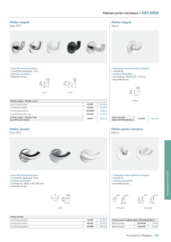 Inox 304 poli brillant 4042P 31,51 € Patère porte-manteau Nylon HR brillant blanc
