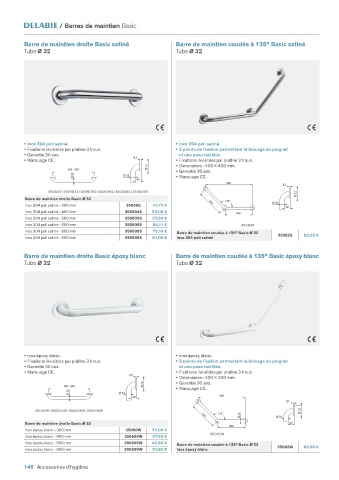 Inox époxy blanc - 500 mm 350505W 43,80 € Barre de maintien coudée à 135° Basic Ø 32