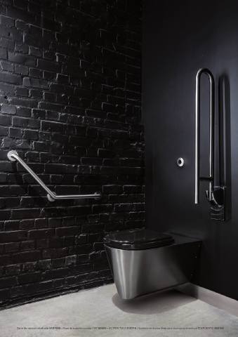 Barre de maintien rabattable 510164S - Barre de maintien coudée 135° 5082S - WC PMR 700 S 110710 - Système de chasse d'eau sans réservoir automatique TEMPOMATIC 463150