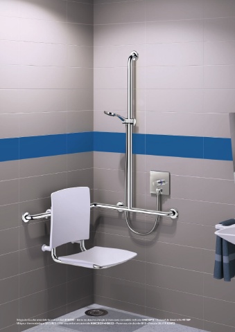 Siège de douche amovible Grand Confort 510300 - Barre de douche d'angle 2 murs avec remontée verticale 5481DP2 - Support de douchette 4110P