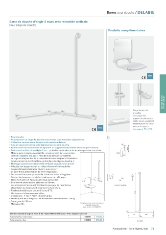 • Peut recevoir un siège de douche à accrocher (à commander séparément).