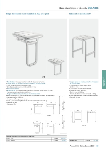• Rabattable : retenue en position verticale et descente freinée. • Larges lattes en plastique faciles d’entretien ACCESSIBILITÉ