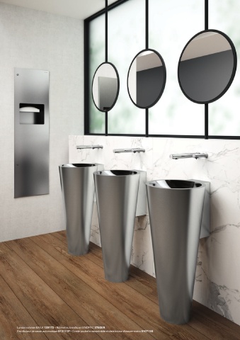 Lavabo colonne BAILA 120172 - Robinet automatique BINOPTIC 379DER Distributeur de savon automatique 512111P - Combi poubelle encastrable et distributeur d'essuie-mains 510715S