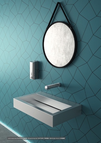 Lavabo suspendu AQUEDUTO 120150 - Mitigeur temporisé TEMPOMIX 3 794055 - Distributeur de savon 510580