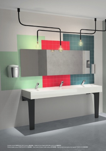 Lavabo collectif MINERALCAST 3 places 454182 - Piétement pour lavabo MINERALCAST (x2) 454010 Robinet automatique TEMPOMATIC 4 440006 - Distributeur de savon automatique 512066S - Sèche-mains à air pulsé ultra-rapide HIGHFLOW 510622S