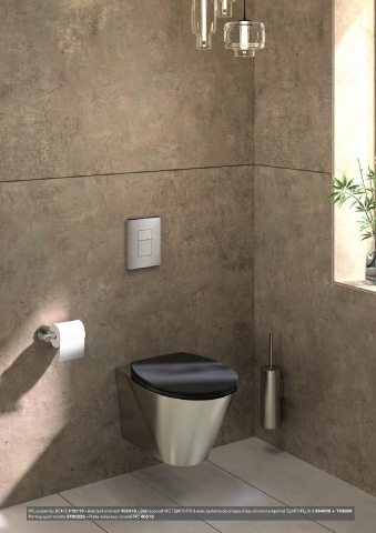 WC suspendu BCN S 110110 - Abattant slim noir 102419 - Bâti-support WC TEMPOFIX 3 avec système de chasse d'eau directe temporisé TEMPOFLUX 3 564065 + 763000 Porte-papier toilette 510083S - Porte-balai avec brosse WC 4051S
