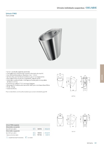 • Arrivée d’eau par l’arrière (encastrée) ou par le haut (apparente). 325 30 URINOIRS