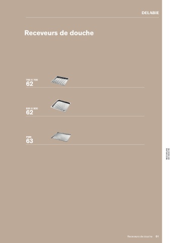 Receveurs de douche 700 X 700 62 800 X 800 62 PMR 63 RECEVEURS DE DOUCHE Receveurs de douche 61