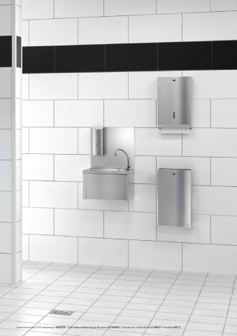 Lave-mains Inox SXS mécanique 182320 - Distributeur automatique de savon 512066S - Distributeur d'essuie-mains 6601 - Poubelle 6617