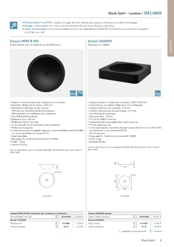 • Finition en Téflon noir mat. • Cuve emboutie d’une seule pièce, sans soudures.