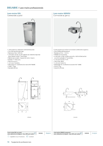• Lave-mains sur pied avec commande au pied. • Lave-mains à accrocher au mur avec commande au genou.