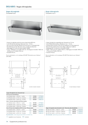 • Auge chirurgicale suspendue avec dosseret de 360 mm. • Auge chirurgicale suspendue avec dosseret de 75 mm.
