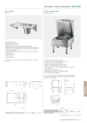 Pour la robinetterie, voir le catalogue DELABIE "Robinetterie pour Hôpitaux" • Combi Lavabo/Vidoir à poser au sol.