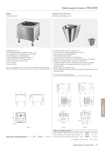 Vidoir à poser - Inox 304 poli satiné 180150 740,74 € Vidoir à poser (XL P) - Alimentation d’eau verticale 182070 1 411,07 €