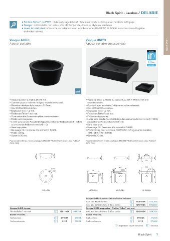 Finition Téflon noir mat 120110BK 637,73 € Avec trou de robinetterie Ø 35 au centre 121830BK 559,75 €