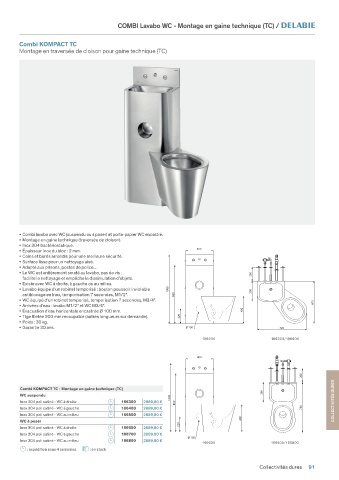 Inox 304 poli satiné - WC à droite 166300 2 889,80 € 850 COLLECTIVITÉS DURES