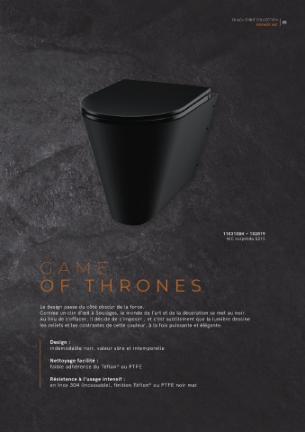 en Inox 304 (incassable), finition Téflon ou PTFE noir mat