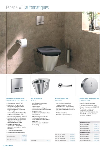 déclenchement automatique X Nettoyage aisé : horizontale pour une utilisation Serrure et clé standard DELABIE
