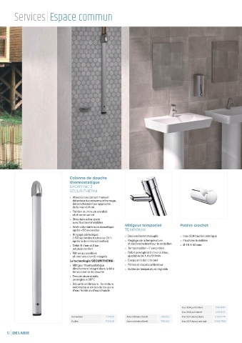 Arrêt volontaire ou automatique Mitigeur temporisé Patère crochet
