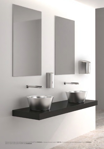 Robinet de lavabo automatique encastrable BINOPTIC 379ENCL - Vasque à poser ALGUI 120110 - Distributeur de savon automatique mural 512066S Sèche-mains à air pulsé HIGHFLOW 510622S