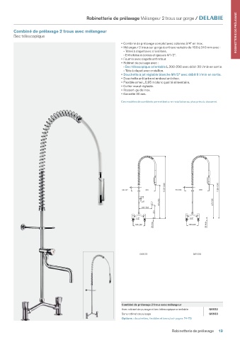 Robinetterie de prélavage Mélangeur 2 trous sur gorge /