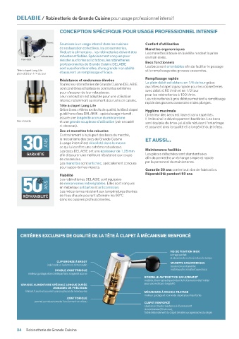 Tête à clapet Long Life et assurent un remplissage efficace. et le remplissage des grosses casseroles.