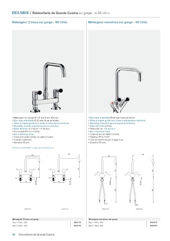 Mélangeur 2 trous sur gorge - 60 l/min Mélangeur monotrou sur gorge - 45 l/min