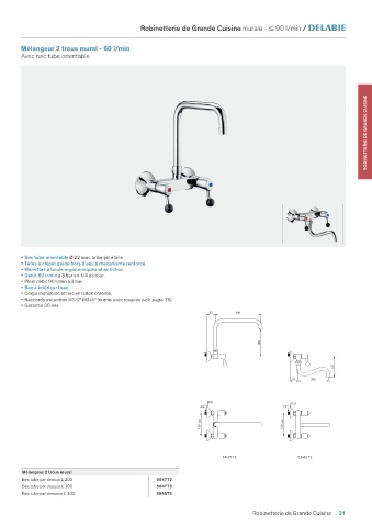 Robinetterie de Grande Cuisine murale - ≤ 90 l/min /