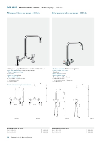 Mélangeur 2 trous sur gorge - 45 l/min Mélangeur monotrou sur gorge - 45 l/min