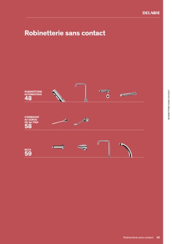 Robinetterie sans contact ROBINETTERIE SANS CONTACT ROBINETTERIE AUTOMATIQUE 48 COMMANDE AU GENOU OU AU PIED 58 BECS 59 Robinetterie sans contact 45
