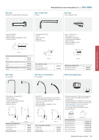 • Laiton chromé. • Fixation par contre-écrou sur les modèles bactérien (pas de rétention d’eau ni dépôt