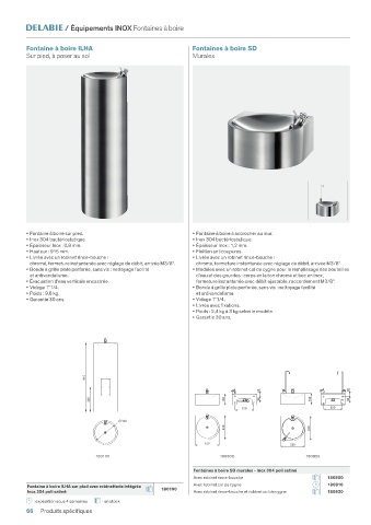 Fontaines à boire SD murales - Inox 304 poli satiné