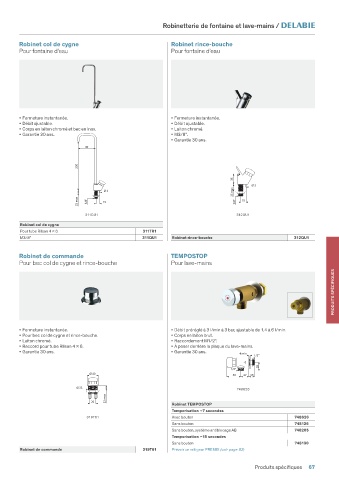 Robinet de commande 319T61 Prévoir un mitigeur PREMIX (voir page 82)