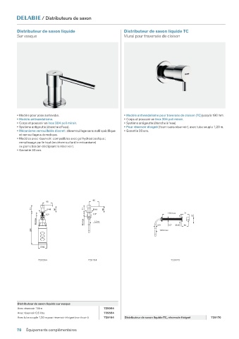 • Modèle pour pose sur lavabo. • Modèle antivandalisme pour traversée de cloison (TC) jusqu’à 190 mm.