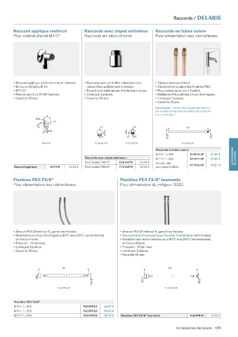• Raccord applique renforcé en laiton chromé. • Raccords avec joint filtre interdisant tout • Tubes cuivre recuit brut.