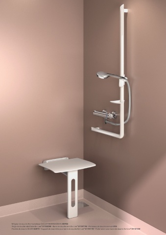 Siège de douche rabattable Be-Line 511930W - Barre de douche en L Be-Line 511971W - Pommeau de douche monojet 815