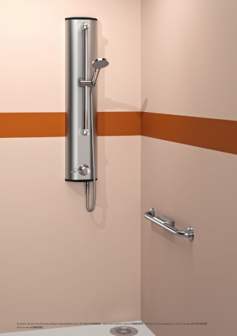 Colonne de douche thermostatique séquentielle SECURITHERM H9635 - Barre de maintien droite 50505P2 - Tablette porte-savon pour barre de douche 511922P Siphon de sol 683002